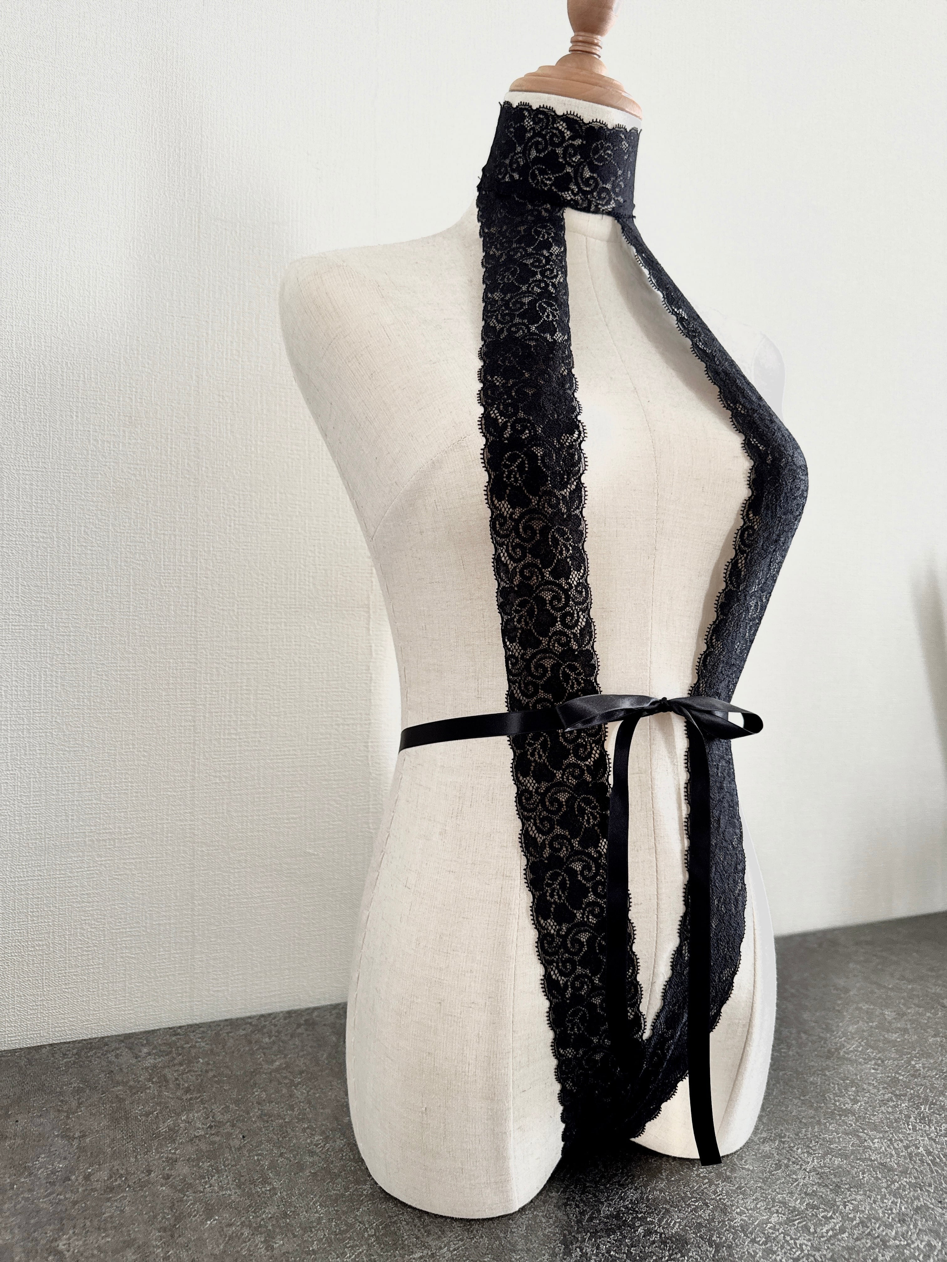 ハイネックレースウエストリボン(ブラック)